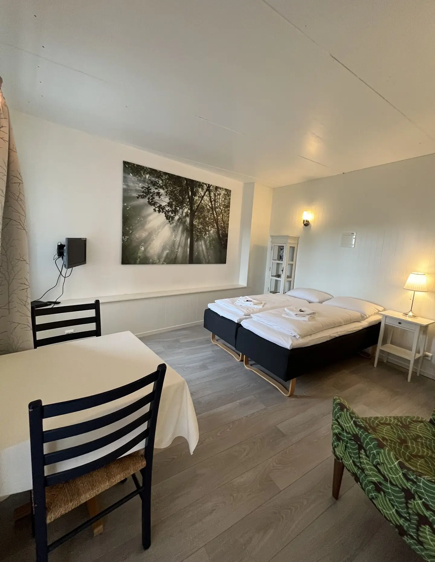 24 m², Tomanns rom, Dobbel/splitt senger, Spiseplass, Lounge stoler, Bad, TV, Kjøkkenkrok.